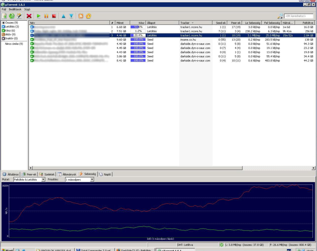 Kép az utorrent -ről és a torrentflux -ról arányjavítás közben: